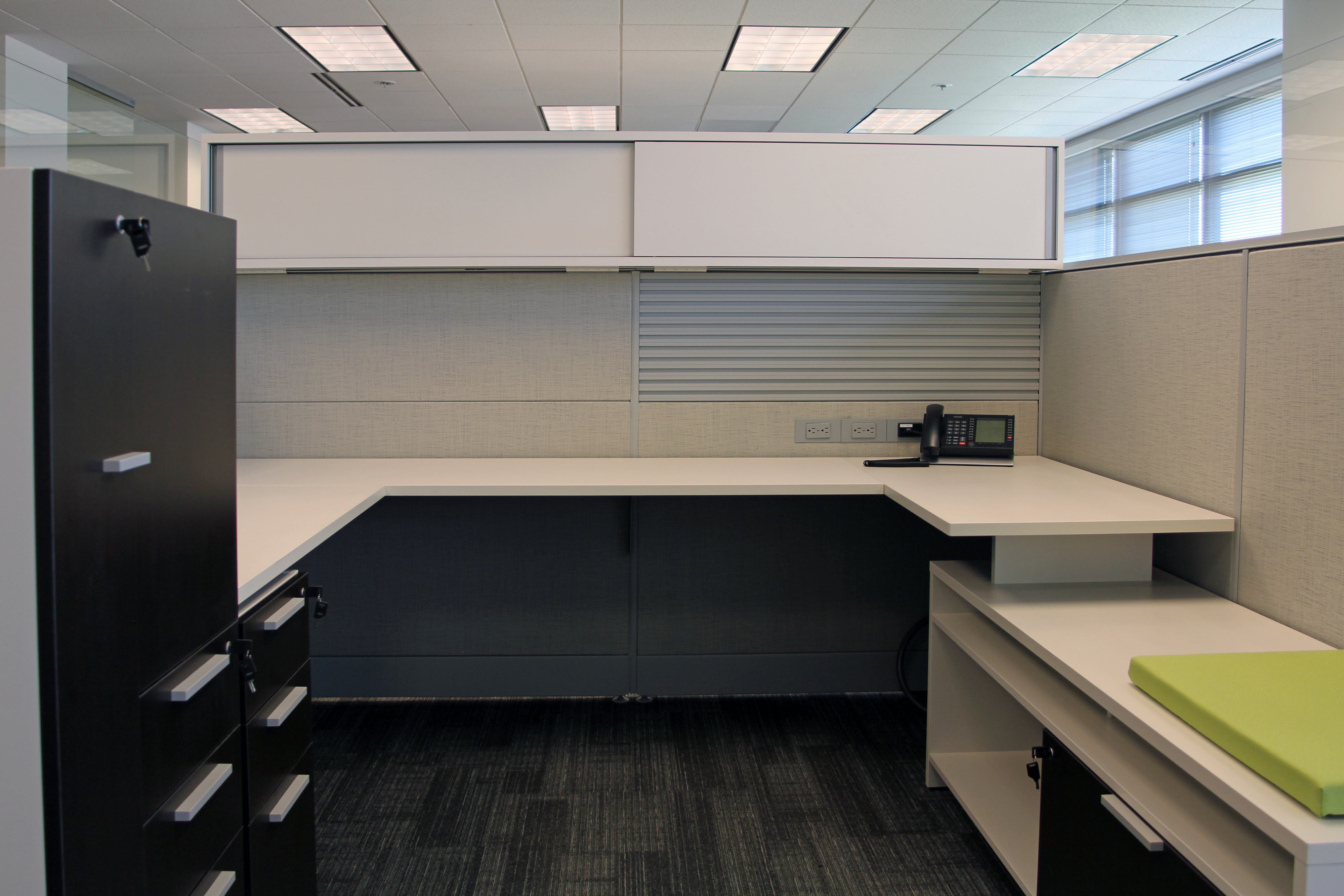 Glass PanelsTo allow natural light to travel through the office, glass panels were stacked on top of the 51 inch workstation panel systems.